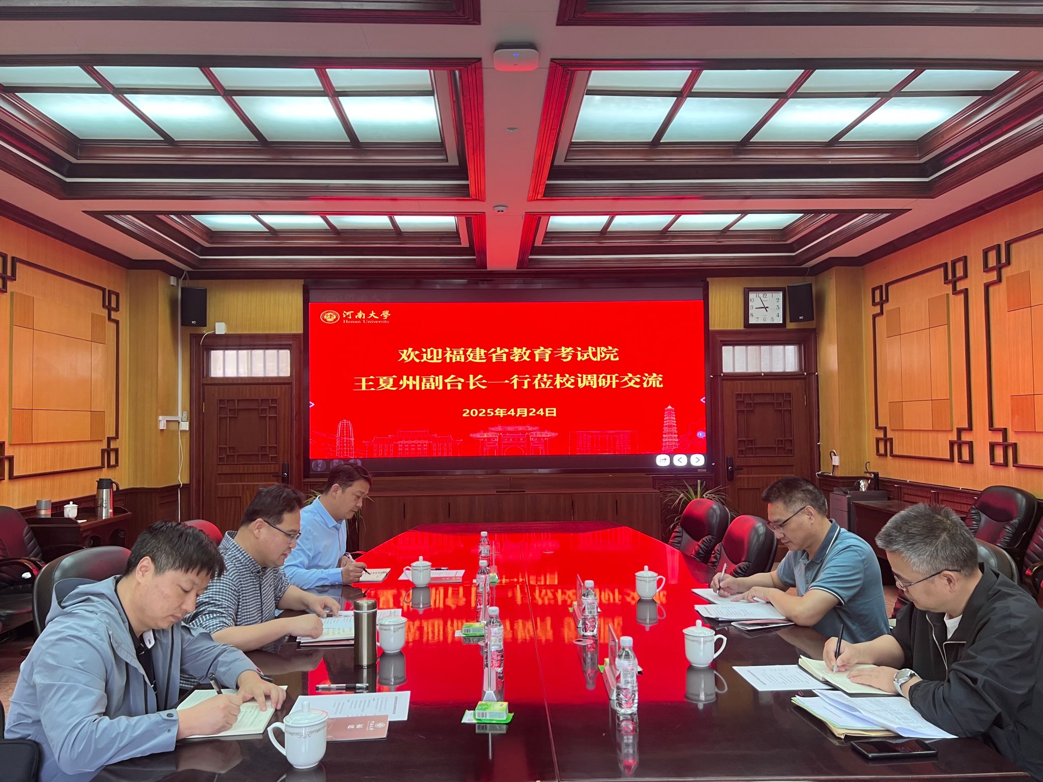 王夏州高度赞扬了河南大学深厚的历史底蕴和丰硕的办学成果,并对学校长期以来对福建省教育事业的支持表示诚挚感谢。在座谈中,他系统介绍了福建省高等教育现状和高考生源情况,期盼河南大学能够继续支持福建省教育事业的发展,并承诺福建省教育考试院将全力为双方的合作提供优质服务保障。